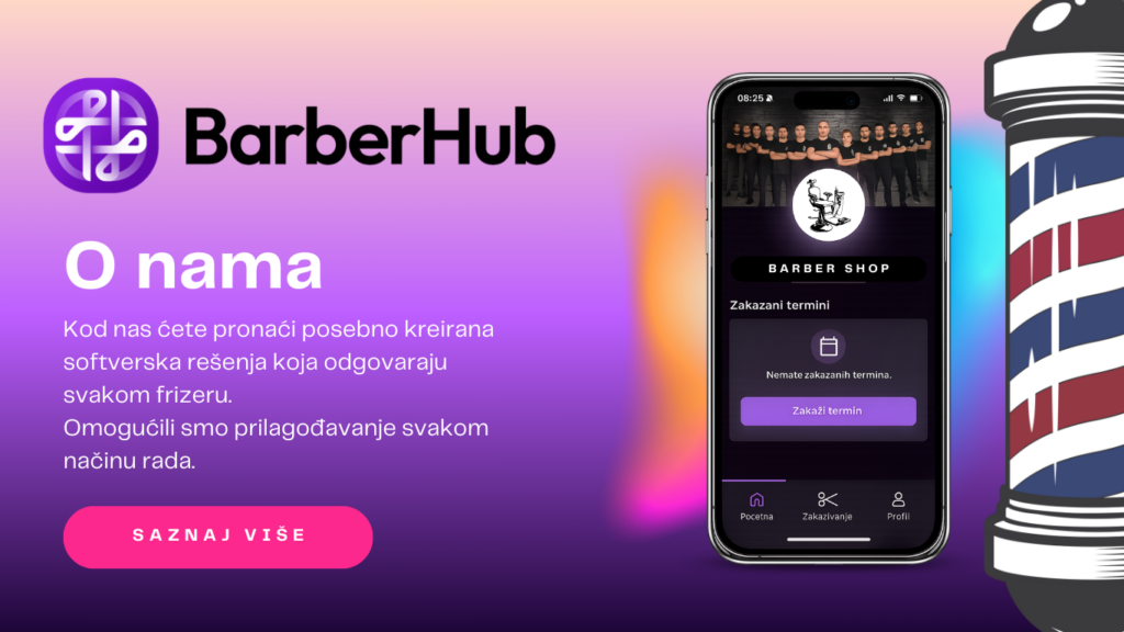 BarberHub radi kroz dve aplikacije — jednu za klijente i jednu za salone — kako bi zakazivanje bilo jednostavno, a upravljanje poslovanjem maksimalno pregledno.